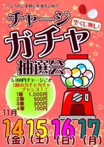 期間中、ICカードへ5,000円ご入金ごとに空くじなしの